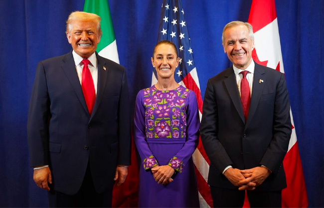 Claudia Sheinbaum publicó un mensaje en su red social X, tras reunirse con sus homólogos de Estados Unidos, Donald Trump, de Canadá, Mark Carney.