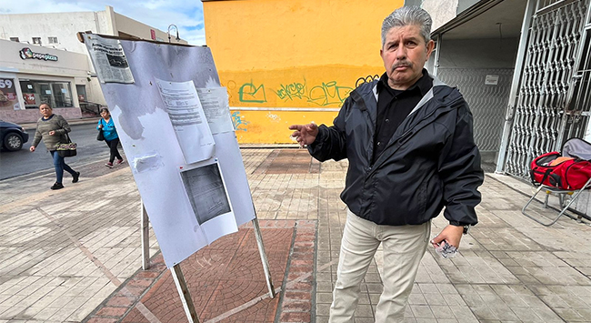 La mañana de este lunes, colocó pancartas en las que detalló las diversas irregularidades, las cuales también difundió a viva voz y con un megáfono en mano, entre las personas que realizaban trámites en las oficinas ubicadas en la calle de Victoria, de la Zona Centro de Saltillo.