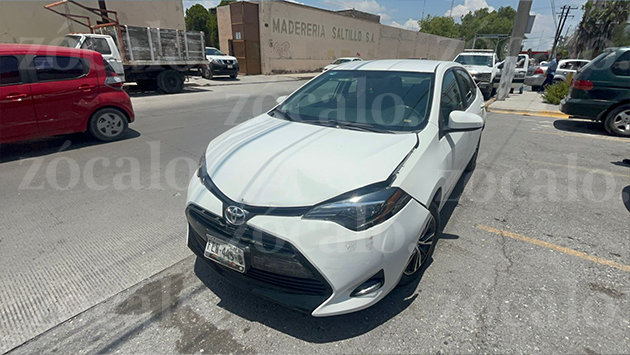 Saltillo, Coah.- Un desprevenido conductor impactó por alcance a joven automovilista y lo proyectó contra una banqueta de una plaza comercial de la Zona Centro de Saltillo.