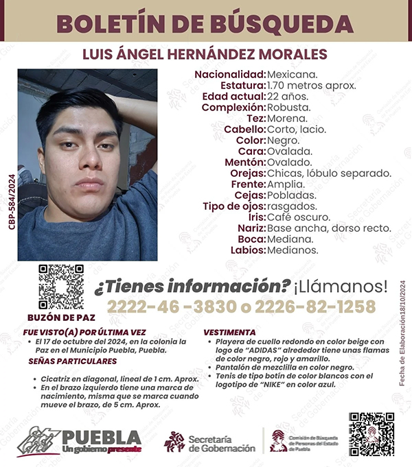 Puebla.- Familiares y amigos de Luis Ángel Hernández Morales se manifestaron para exigir a la Fiscalía General del Estado (FGEP) que intensifique su búsqueda, luego de que el estudiante universitario desapareció desde el 17 de octubre, cuando fue sacado de un antro por personal de seguridad.