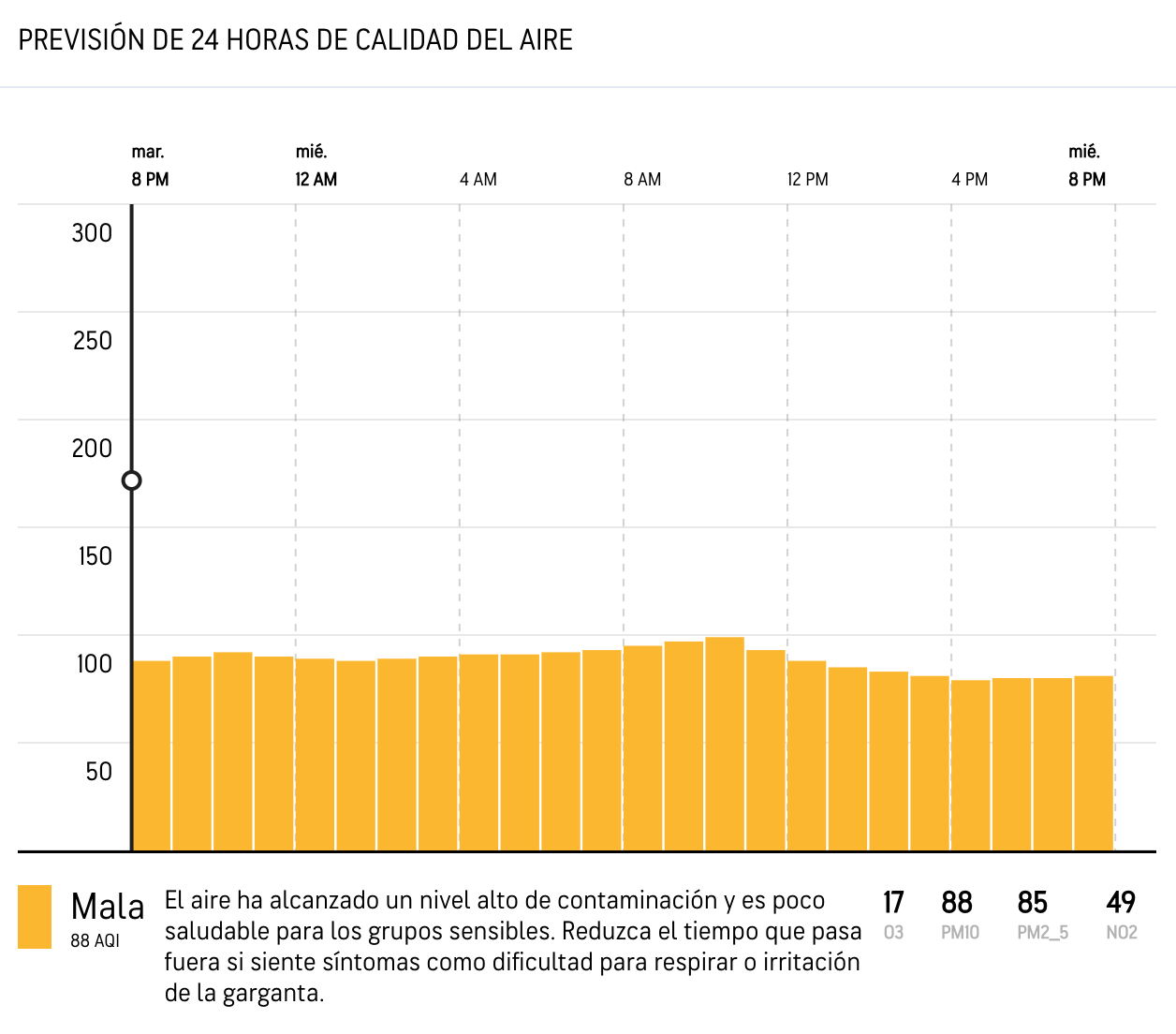 La calidad del aire puede deteriorarse temporalmente debido a: Humo de los fuegos artificiales, Humo y la materia microscópica de los incendios forestales, Tormentas de polvo, Actividad volcánica.