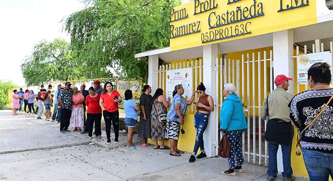 Monclova, Coah.- Adultos mayores forman largas filas en las casillas que abrieron con algunos minutos de demora.
