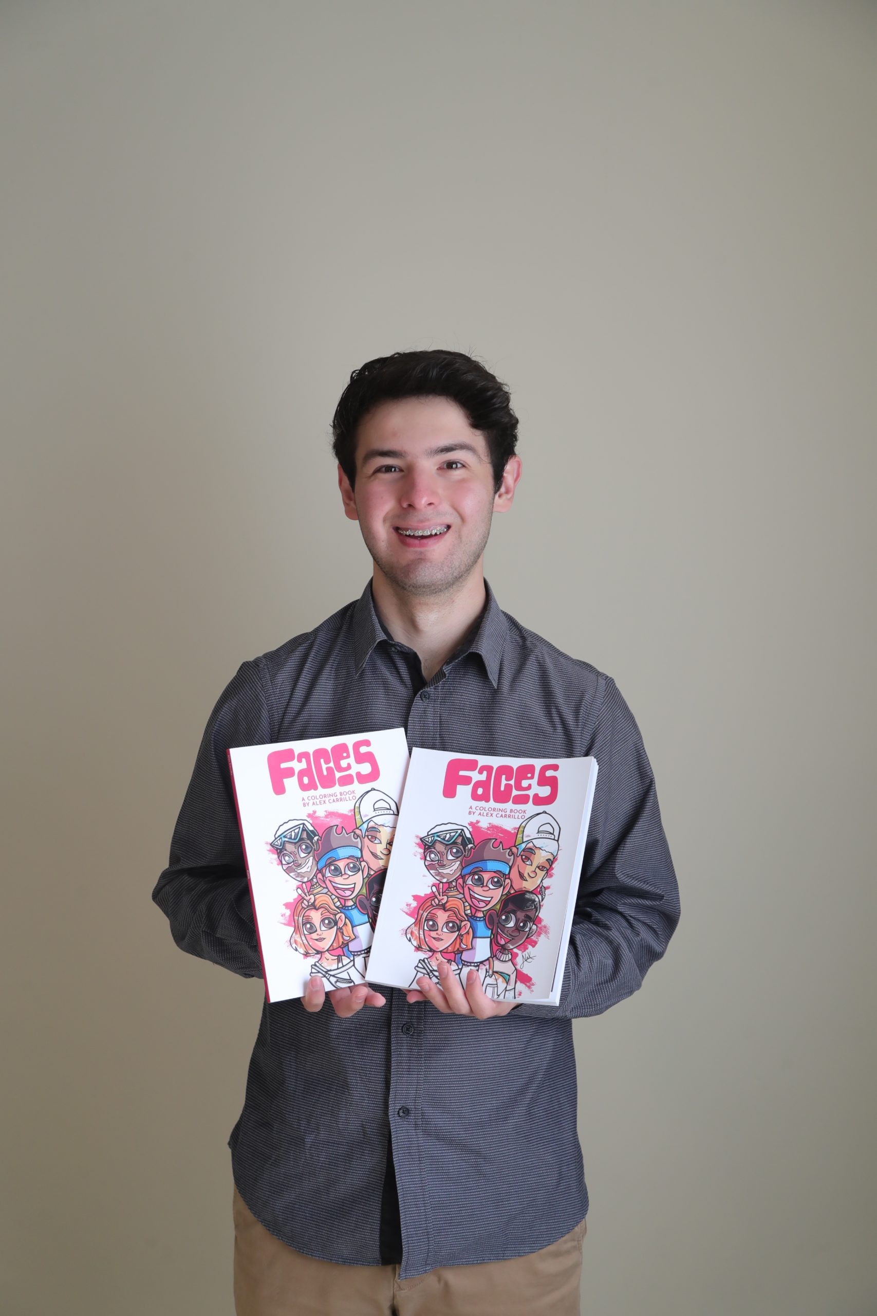 Después de lo de Scribe, seguí con mi Instagram, así fue como personas de diferentes partes del mundo y de distintas edades comenzaron a ver mi arte y les llamó la atención, aunque para mí era un poco difícil mantener el equilibrio del tipo de dibujo que puede ser para niños, adolescentes o adultos. Así, en 2019 varios niños y adolescentes me comenzaron a seguir y me pedían ue les pasara el dibujo sin color para ellos colorearlo. Ahí pensé que estaría padre hacer un libro para colorear, me acuerdo que este año al comienzo de la pandemia sabía que se venían momentos difíciles y se me ocurrió esto como una manera de despejarse de todo, hacer un libro para colorear con varios dibujos míos, lo comencé en junio, entonces de junio a septiembre, Quería combinar cosas que me gustan a mí para darme a conocer como artista, como lo es la moda contemporánea y películas como Perdidos en Tokio de Sofía Coppola, además agregué un tema muy importante que es la diversidad, este año lamentablemente ha pasado de todo y algo bueno que se puede rescatar es que ha habido muchos movimientos para que las personas se expresen, me gustó mucho ese concepto, entonces mi arte quise guiarlo por ese camino e hice este libro para colorear que son personas de diferentes partes del mundo, de género, de personalidades, de atributos físicos, conviviendo entre sí, el libro se llama Faces porque es eso, rostros de diferentes partes del mundo sin juzgar a nadie. También algo que me gusta mucho de este libro, es que yo les doy el 10% al público con la línea del dibujo y ya ellos con el otro 90% le dan vida al personaje, son más de 50 personajes que hice en este libro.