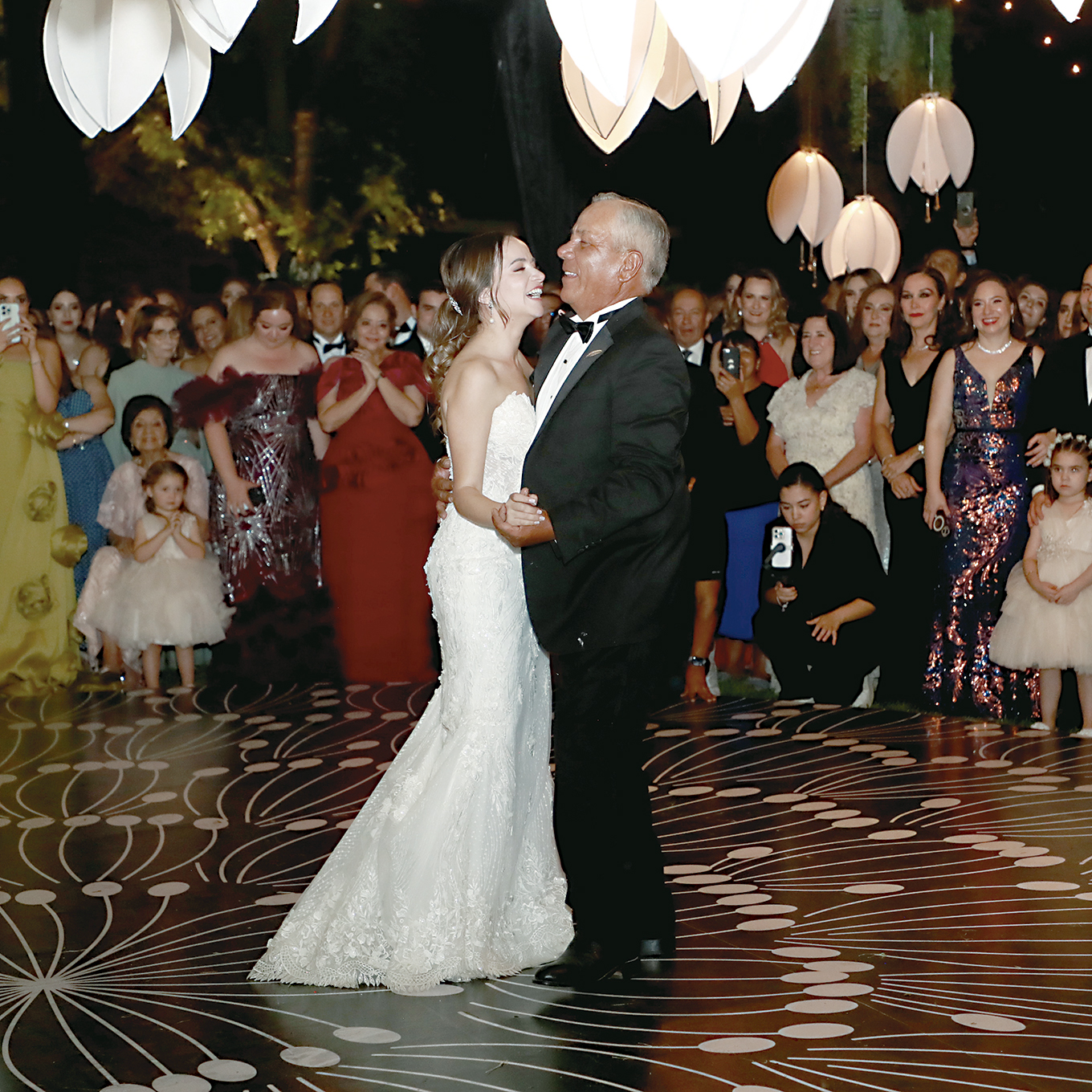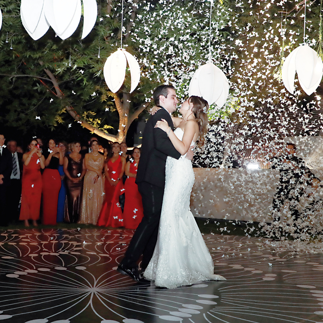 Ana Cristina de las Fuentes Melo y Andrés García Isaac bailan su primera pieza como esposos.