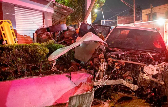 “ Así es la cinemática del choque, pues sí fue bastante fuerte y deja varios daños a consecuencia del choque, un poste de Telmex fracturado de su base también con afectación en lo que viene siendo parte de la fachada y el daño material de los vehículos”, dijo.