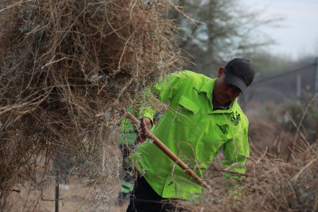 Como parte de las acciones de embellecimiento de la ciudad, personal de la Dirección de Medio Ambiente y Desarrollo Sustentable, limpió y deshierbó el área verde y el sitio donde se encuentran las letras que dan la bienvenida en la entrada norte de Saltillo, en el bulevar Venustiano Carranza.