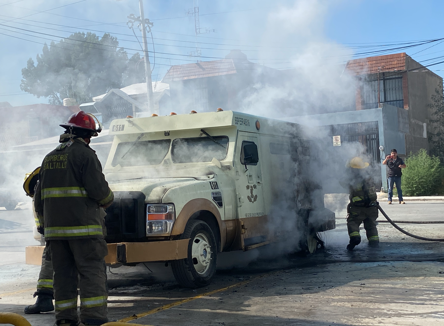 Saltillo, Coah.- Un camión de transportación de valores se incendió al exterior de una tienda de conveniencia de la colonia República Oriente, lo que dejó incuantificables pérdidas materiales y generó la movilización de cuerpos de emergencia y autoridades.