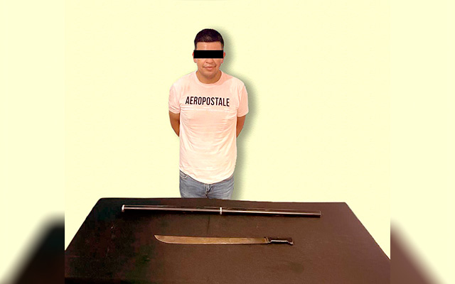 Al momento de la detención del presunto se le decomisó un tubo metálico, además de un machete que traía en su poder.
