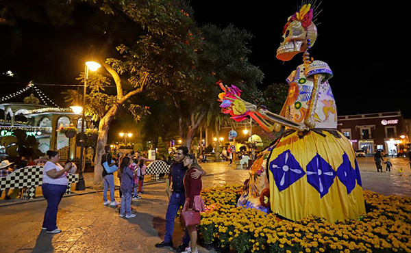 Carlos Miranda Huerta, originario de Cancún, aseguró que se quedó maravillado con las calaveras gigantes porque nunca había visto nada igual.