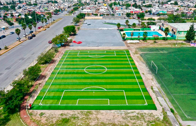Las tres canchas contarán con superficie de pasto sintético, malla perimetral, iluminación para actividad deportiva nocturna, así como colocación de bancas para los equipos.