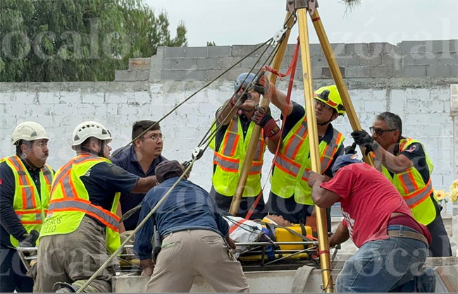 Debido a que el afectado presentaba una fractura en la cadera y en un brazo, los cuerpos de rescate actuaron en conjunto para inmovilizarlo y sacarlo de la profunda fosa.