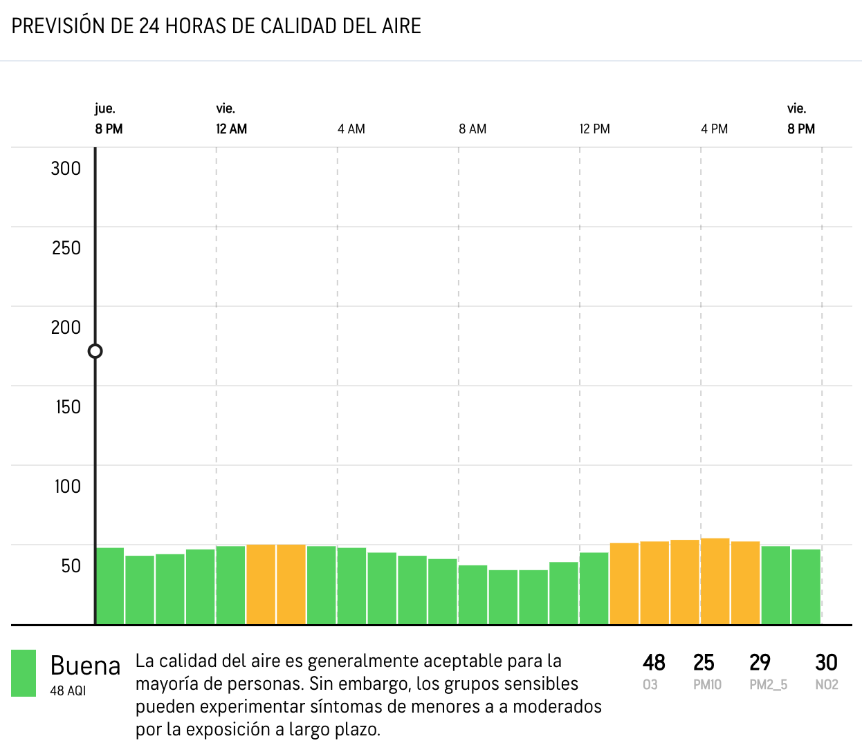 Esto significa que, para la mayoría de las personas, la calidad del aire es aceptable y pueden realizar sus actividades al aire libre con normalidad.