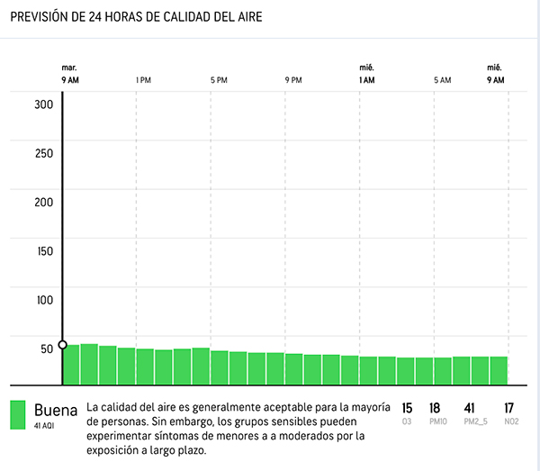 Se pronostica que la calidad del aire para el resto de la mañana y tarde se mantendrá en buenos niveles.