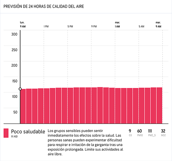 La calidad del aire puede deteriorarse temporalmente debido a: Humo de los fuegos artificiales, Humo y la materia microscópica de los incendios forestales, Tormentas de polvo, Actividad volcánica.