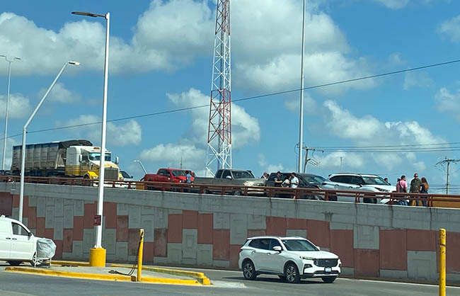 Piedras Negras, Coah.- Un choque múltiple en el que participaron cuatro vehículos automotores se registró en la rampa de salida del puente rojo ubicado en la avenida Román Cepeda, casi frente a un centro comercial.