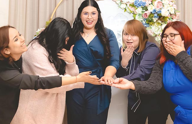 Por otro lado sus amigas, también estuvieron presentes, colmándola con buenos deseos y felicitaciones por esta nueva etapa en su vida.