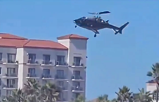 Los restos del helicóptero quedaron incrustados entre árboles frente al hotel. La policía de Huntington Beach calificó el suceso como “excepcional” dada la complejidad del operativo en una zona tan concurrida.