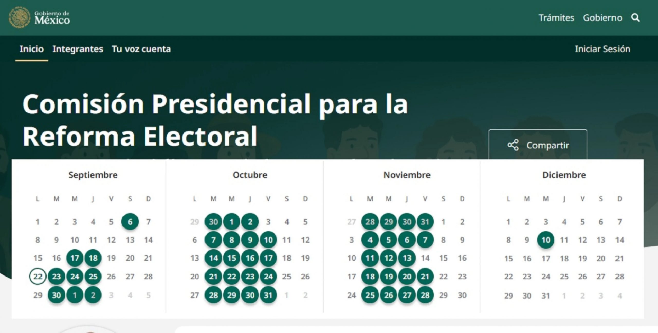 En total, la agenda incluye 31 estados, con fechas entre septiembre y diciembre.