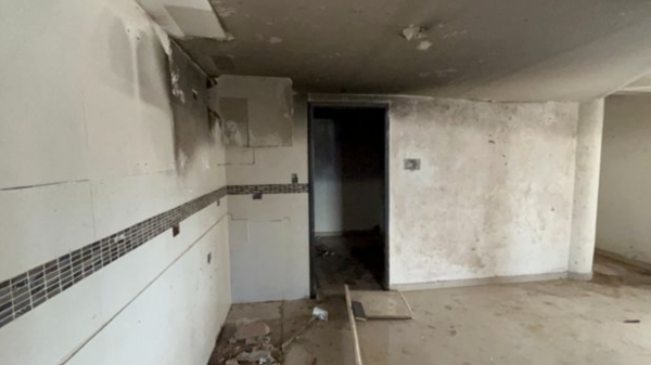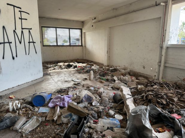 Paredes agujeradas, quemadas, restos de muebles quemados y vidrios quebrados ahora se mezclan con una gran cantidad de basura, heces fecales, restos de ropa y de utensilios para drogarse.