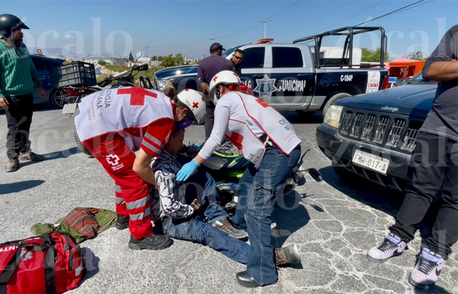 El motociclista, identificado como Miguel, de 46 años, no pudo evitar el impacto y terminó cayendo al pavimento, lo que provocó que de inmediato, testigos solicitaron el apoyo de los cuerpos de auxilio, por lo que al lugar acudieron paramédicos de la Cruz Roja.