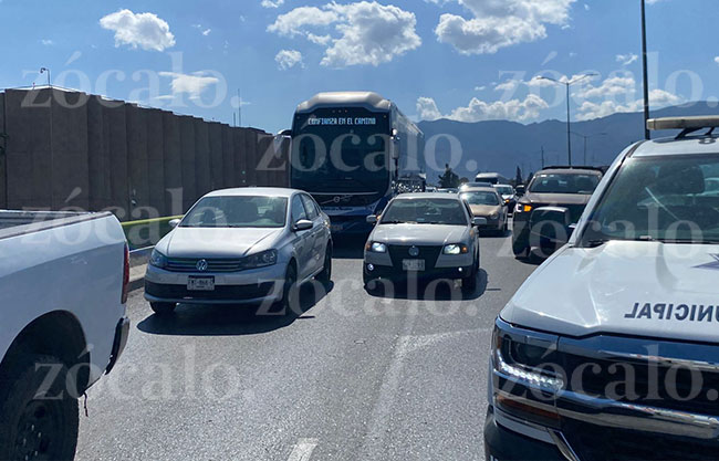 El percance mantuvo bloqueados dos de los carriles de la vialidad y generó intenso tráfico, por lo que elementos de Tránsito Municipal realizaron maniobras de abanderamiento, hasta que concluyó el levantamiento del vehículo.