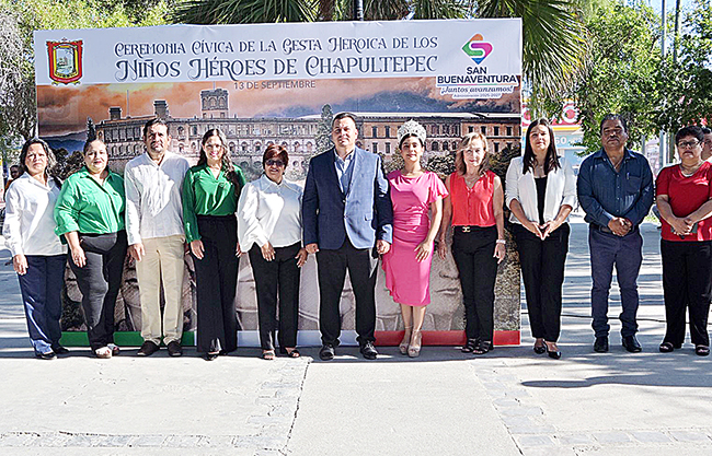 San Buenaventura, Coah.- Autoridades municipales encabezadas por el alcalde Javier Flores Rodríguez, asistieron a la Secundaria General Andrés S. Viesca, donde se llevó a cabo una emotiva ceremonia cívica en conmemoración del 178° aniversario de la gesta heroica de los Niños Héroes.