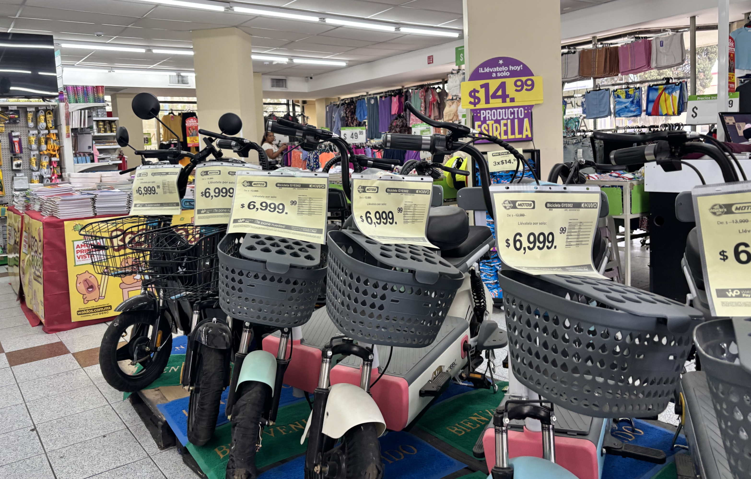 Las tiendas departamentales como Elektra y Coppel ofrecen motocicletas desde los 9 mil pesos, mientras que, en cadenas más económicas como Waldos, conocida por su estilo tipo Dollar Tree, es posible encontrar bicicletas eléctricas desde los 6 mil pesos.