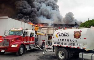 Se dijo también que los trabajos de combate se realizan desde varios flancos para reducir el riesgo de propagación del incendio a empresas aledañas