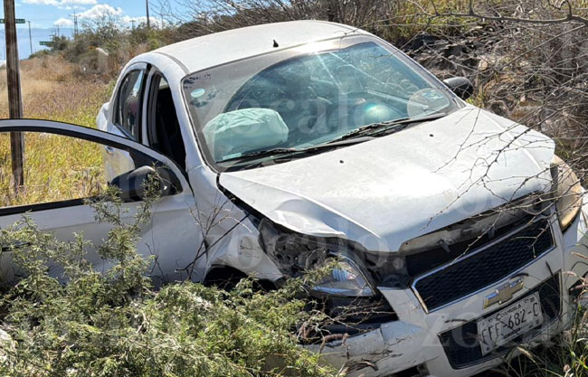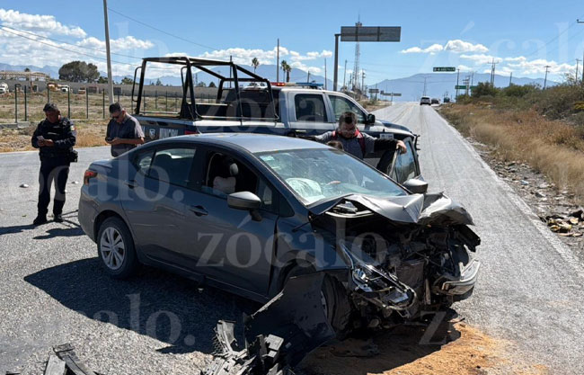 El accidente se registró alrededor de las 11:00 horas de este domingo, cuando la conductora de un Nissan Versa se desplazaba por la carretera Estatal los Pinos.