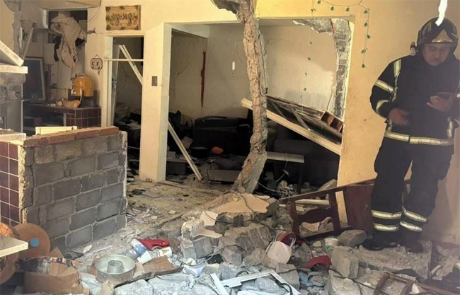 Debido a que algunos muros de la vivienda se vinieron abajo, personal de Protección Civil llevó a cabo una evaluación para determinar si presenta daños estructurales.