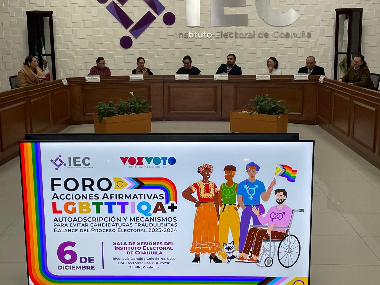 El Foro de Acciones Afirmativas LGBTTTIQA+: autoadscripción y mecanismos para evitar candidaturas fraudulentas. Balance del proceso electoral 2023-2024, organizado por el Instituto Electoral de Coahuila y la revista Voz y Voto, donde participaron las consejeras nacionales del INE, Claudia Zavala y Rita Bell López, analizó estas cuestiones.