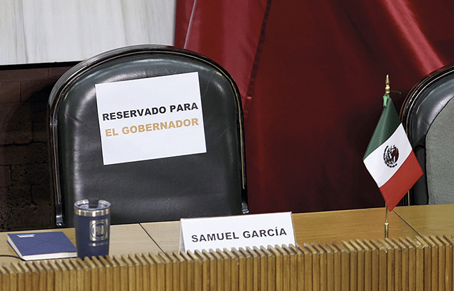 Ciudad de México.- La silla en el Congreso de Nuevo León tenía un cartelón con la frase “Reservado para el Gobernador”, pero se quedó vacía: por tercer año consecutivo, Samuel García no acudió a entregar su Cuarto Informe ni a escuchar los posicionamientos de los legisladores.