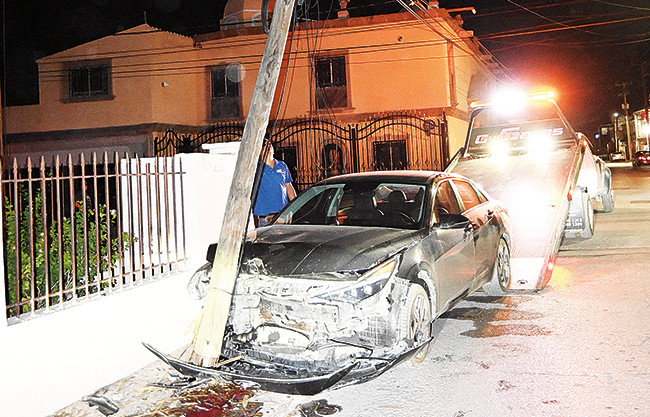 El hecho ocurrió sobre la calle Manuel Acuña, al llegar al cruce con calle San Miguel, donde el conductor identificado como Víctor Martínez, se impactó de frente contra un poste de madera propiedad de Telmex.