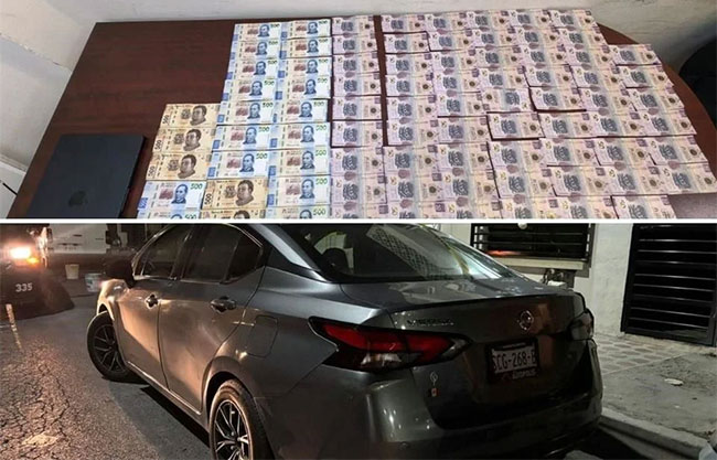 Durante la revisión, los oficiales encontraron en una bolsa de plástico la cantidad de 18 mil 300 pesos en efectivo.
