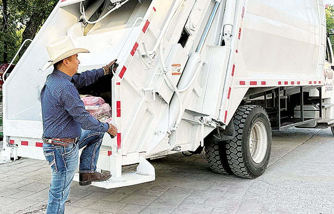 Candela, Coah.- Camión recolector de basura donado a Candela, inicia su recorrido para beneficiar a la comunidad.