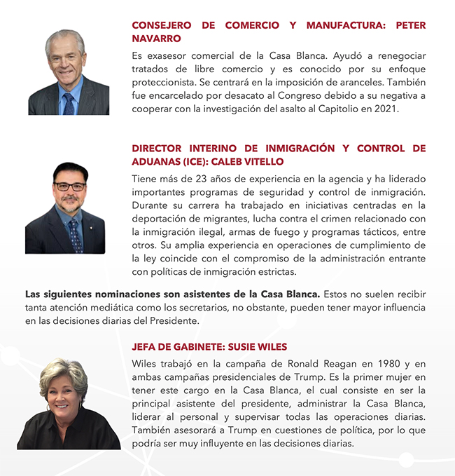 Para su segundo mandato, Donald Trump ha seleccionado a figuras clave que desempeñarán un papel fundamental en su agenda gubernamental.