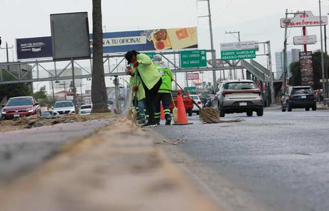 Asimismo, personal municipal atendió con limpieza general el periférico LEA, en su tramo entre los bulevares Nazario S. Ortiz Garza y Vito Alessio.