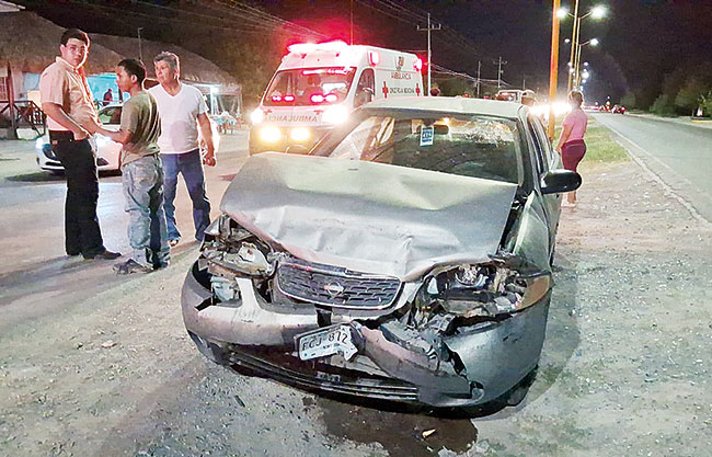 Al realizarse el peritaje, indicó que el ebrio conductor del automóvil Nissan Sentra se desplazaba de poniente a oriente por la carretera 30, siendo a la altura de la calle Matamoros cuando no guardó la distancia correcta y se estrelló en la parte trasera de la camioneta Chevrolet Silverado, color gris, la cual era conducida por la paisana Noely Medina Sandoval.