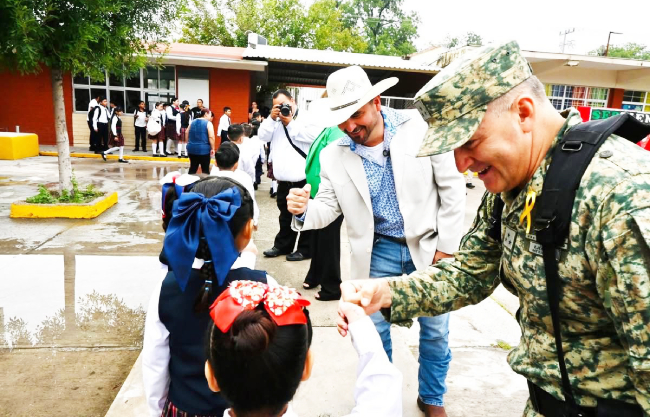 En su mensaje, el alcalde reconoció la participación del 12/o Regimiento de Caballería Motorizada, que además de integrarse con la escolta, colaboró en labores de limpieza. “Me da mucho gusto verlos aquí, sin duda son de inspiración; ayúdenos visitando otras escuelas para motivar a más niños. Me llena de orgullo ver a nuestros alumnos bien derechitos y uniformados, eso quiere decir que vamos por buen camino”, expresó.