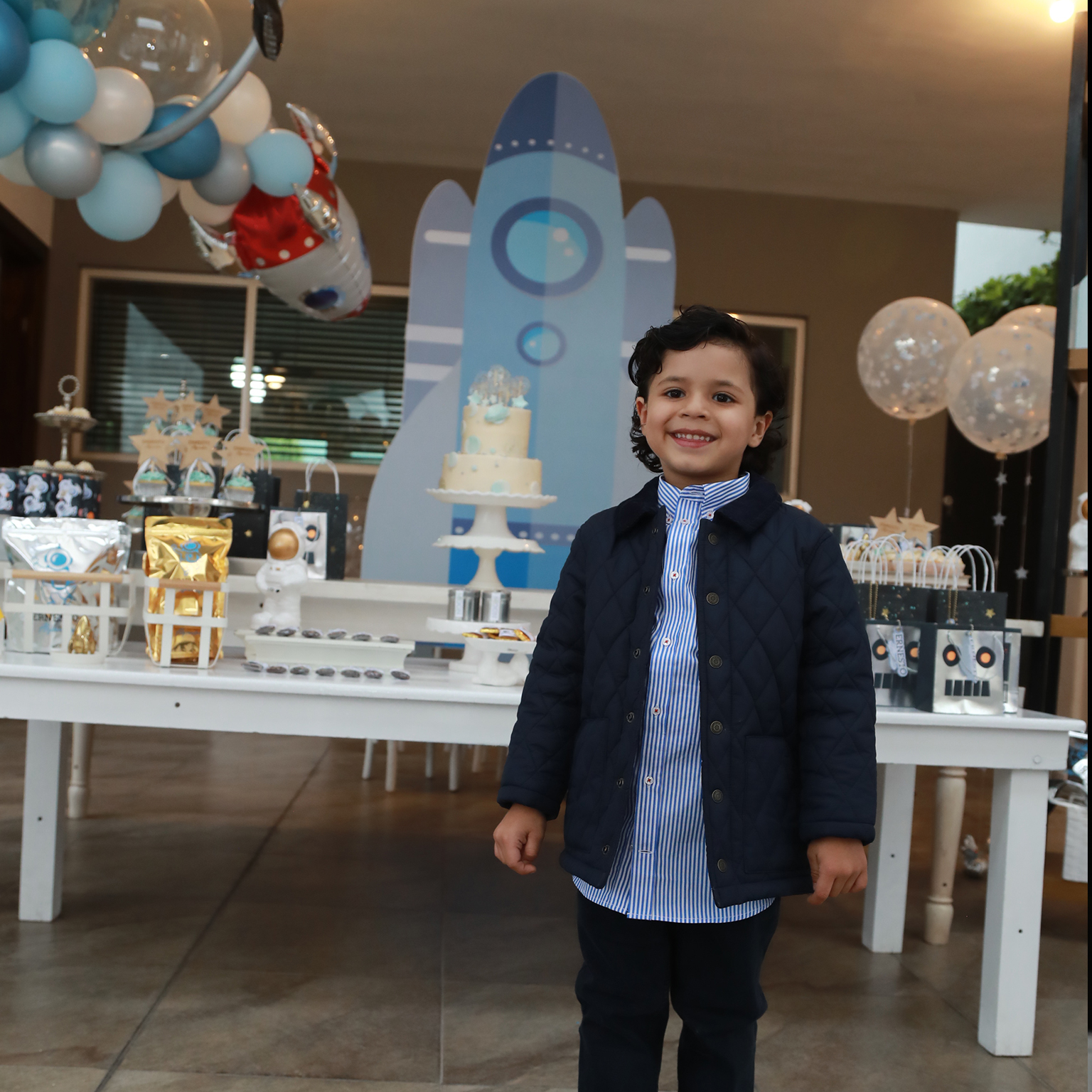 Saltillo, Coah.- Con una ambientación del Espacio, astronautas y cohetes, Ernesto Alejandro festejó su 5 años de edad.