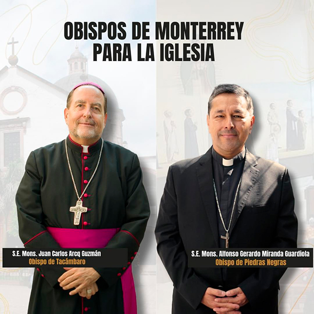 Miranda Guardiola se desempeñaba hasta el día de hoy como Obispo auxiliar de Monterrey y la noticia fue publicada hoy 8 de junio en el diario El Observatorio Romano a mediodía tiempo de Roma.