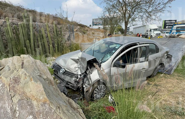 El automóvil se dirigió a la acera poniente y colisionó contra las piedras que adornan la entrada de la ciudad, por lo que se informó a las autoridades.