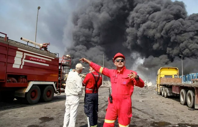 El incendio, aún fuera de control, amenaza con propagarse a otras áreas del puerto, ubicado cerca de Bandar Abás y de Ormuz, por donde transita una quinta parte del petróleo mundial.