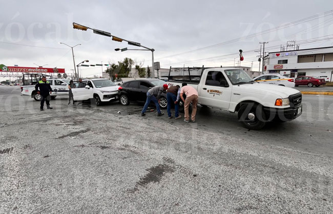 El percance ocurrió antes de las 09:00 horas y fue ocasionado por el conductor de un Ford Focus que al transitar de norte a sur, impactó por alcance a una camioneta Ford Ranger y la proyectó contra un Chevrolet Beat al pasar el cruce con la avenida 20.