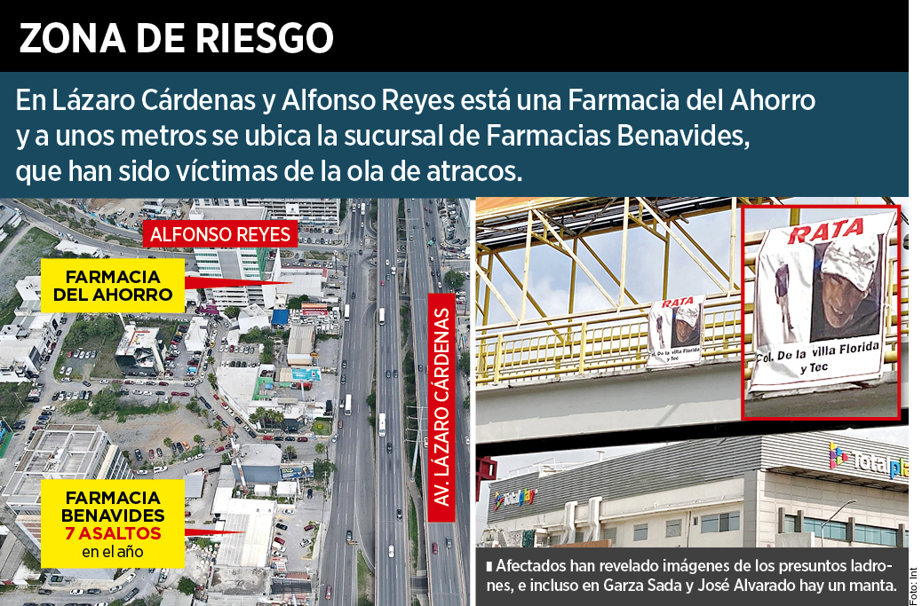 La sucursal de Farmacias Benavides ubicada en Lázaro Cárdenas y Camino al Mirador es un ejemplo de la inseguridad en la zona. Ese negocio suma al menos siete asaltos en lo que va del año.