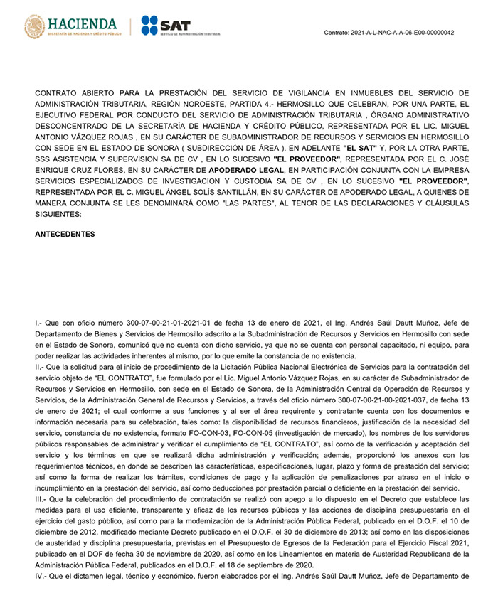 Esto sin contar los otorgados por el Instituto Nacional de Migración para la vigilancia de estaciones migratorias que, aunque han sido documentados por medios, no se encuentran en su totalidad en las plataformas de contrataciones.