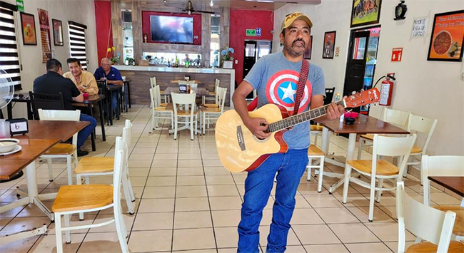Lo encontramos en un restaurante de la localidad, donde acude a cantar a los comensales que al tiempo de disfrutar su comida, disfrutan de su voz, actuación que le compensan con algunas propinas. Nos sentamos con él y le hicimos varias preguntas sobre su trayectoria y sus sueños.