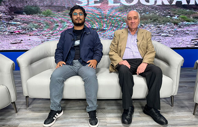 El maestro Luis Galindo Carrillo, junto a Eduardo Villanueva Galván, ganadores de la convocatoria de Cortometrajes en el Barrio, junto, desarrollaron todo un trabajo de investigación y la producción del material audiovisual para el documental “Guayule, Ladrillo y Cal”, que fue presentado la semana pasada en el marco del Festival Internacional de las Artes (FINA 2025).