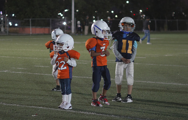 Cada noche, el parque Nogales se pinta de cascos naranjas y azulados. El eco de los silbatos se mezcla con las voces de padres y madres que alientan desde la cerca, reconociendo las yardas de esfuerzo con grandes sonrisas.