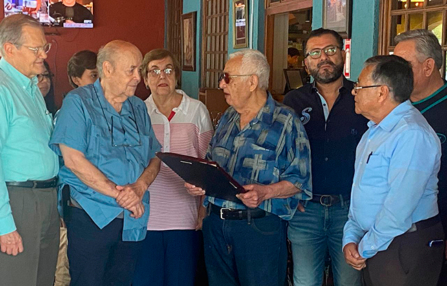 Sus amigos excompañeros de la crónica deportiva le entregaron un placa de reconocimiento a don Pepe ‘Monterrey’ González por su importante trayectoria en la crónica del beisbol profesional.